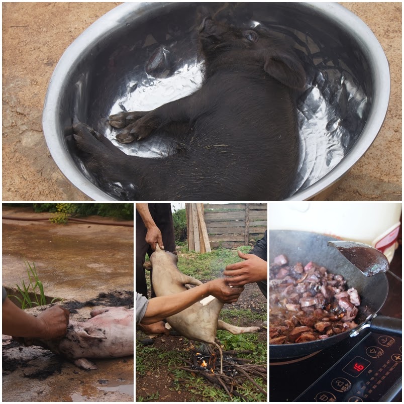 才剛回到家 茶沒喝兩杯 楊爸爸和大叔就去豬圈抓了一隻出生還沒斷奶的小豬