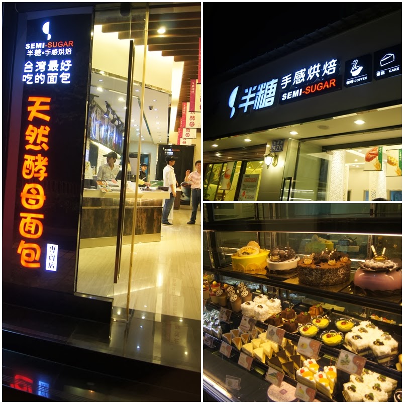 半糖在昆明有八家直營店。大伯接了我們之後,在車上跟小胖寒暄了幾句,就順路帶我們到其中一間店裡,店裡面乾淨又舒適,用餐區也有許多自由座椅,櫥櫃裡面擺滿了各式各樣的甜點,麵包,還有最道地的台灣珍珠奶茶。